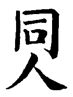 Das Bild des oberen Urzeichens, Kien, ist der Himmel, das des unteren, Li, ist die Flamme. Die Natur des Feuers ist es, emporzulodern zum Himmel. Das gibt die Idee der Gemeinschaft. Die zweite Linie ist es, die durch ihr zentrales Wesen die fünf starken um sich vereint. Das Zeichen ist das Gegenstück zu Nr. 7, das Heer. Dort: innen Gefahr, außen Gehorsam als Wesen des kriegerischen Heeres, das zu seinem Zusammenhalt des einen Starken unter den vielen Schwachen bedarf. Hier: innen Klarheit, außen Stärke, als Wesen der friedlichen Vereinigung der Menschen, die zu ihrem Zusammenhalt des einen Weichen unter den vielen Festen bedarf.