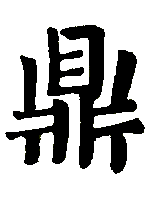 Das ganze Zeichen ist das Bild des Tiegels, unten die Beine, dann der Bauch, dann die Ohren, bzw. Henkel, und oben die Ringe zum Tragen. Das Bild des Tiegels legt gleichzeitig den Gedanken der Ernährung nahe. Der Tiegel, aus Bronze gegossen, war das Gerät, das im Ahnentempel und bei Festmählern die gekochten Speisen enthielt. Aus ihm wurden sie vom Hausherrn in die Schüssel der Gäste geschöpft.
